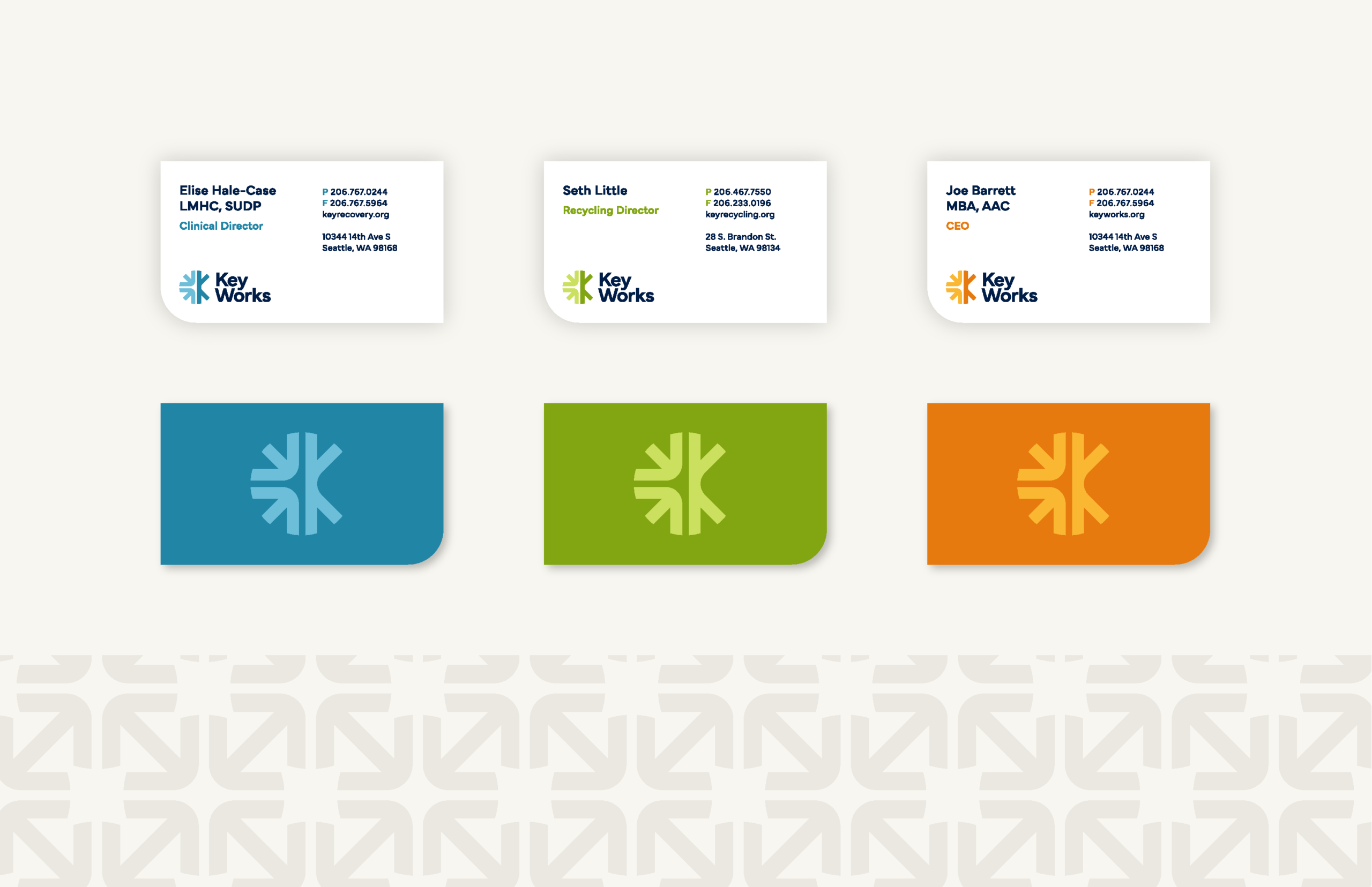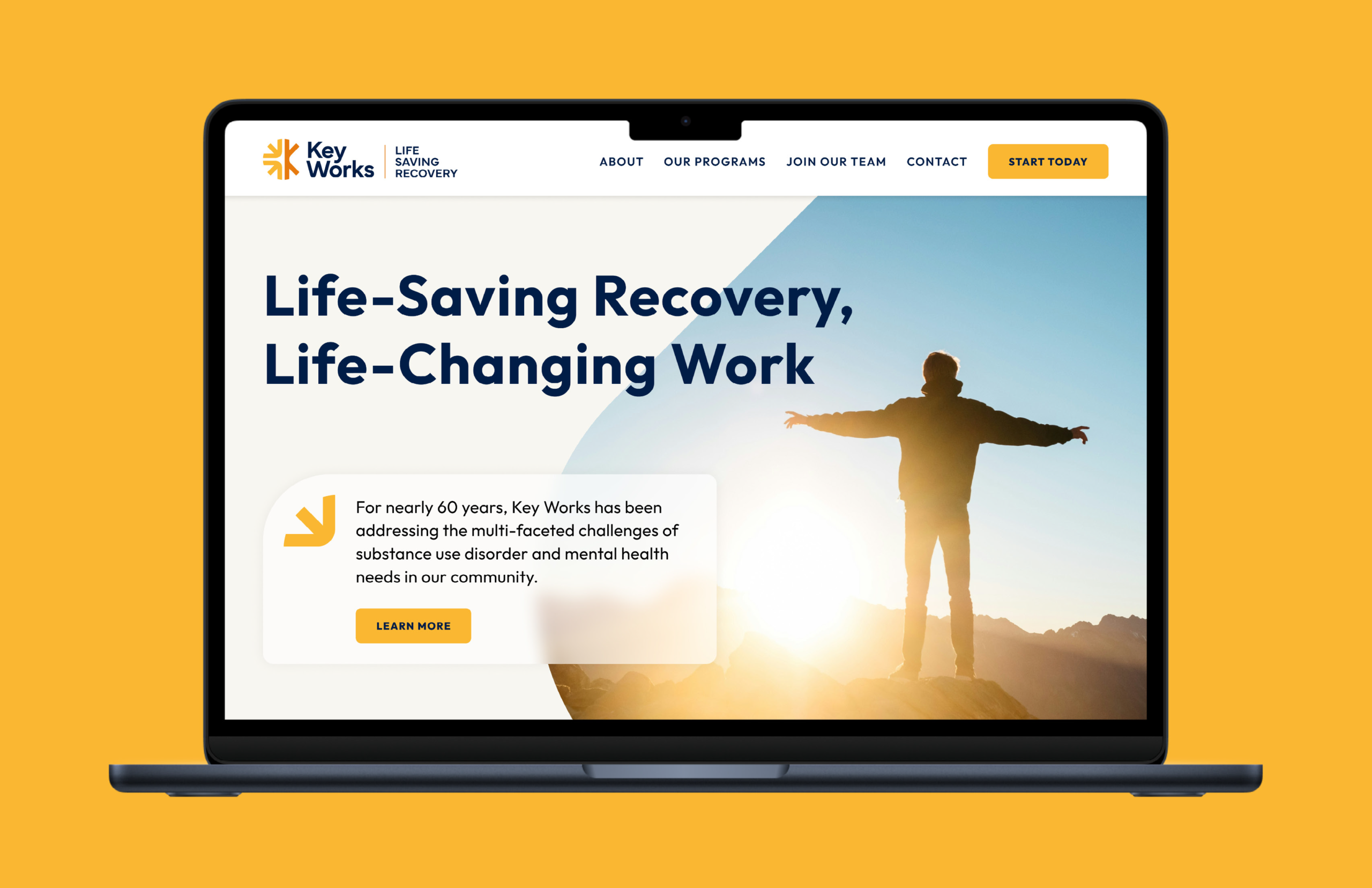 Key Works came to us at a pivotal moment for their organization. Their community-focused work spans advocacy, recovery services, and job training at a zero-to-landfill recycling enterprise—three distinct operations that only reach their full impact when people understand how connected they really are. The old brand wasn’t doing that story justice. We set out to build a single identity that could pull everything together and make their model instantly clear. The new name, Key Works, speaks to unlocking human and community potential. The brand system uses distinct colors to differentiate each part of the organization, and brings warmth, clarity, and purpose to every touchpoint. Today, the organization can explain its mission in one cohesive voice—one that reflects both the depth of their history and the hope they create every day.