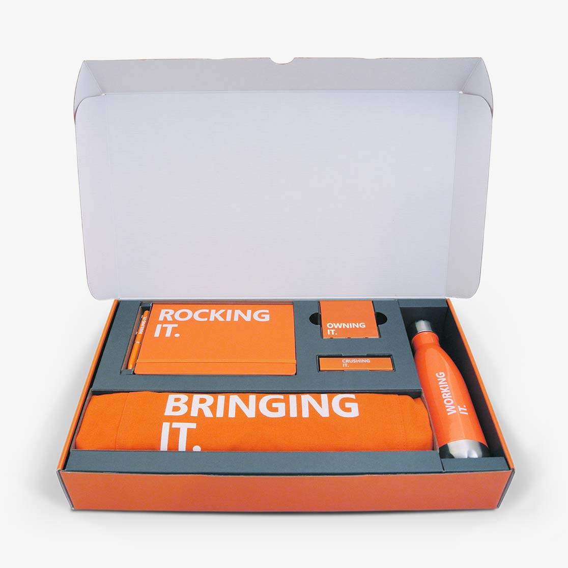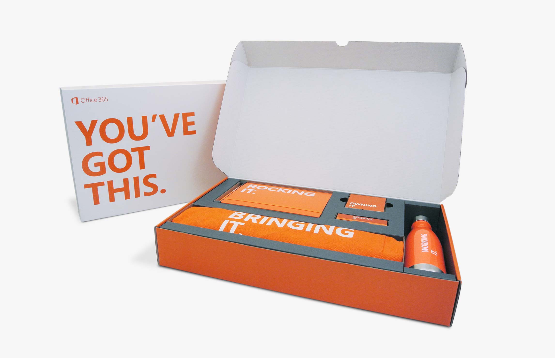 When Office 365 wanted to recognize the “power doers” who were pushing the platform to new heights, we suggested a refreshingly analog approach: a physical loyalty kit. This wasn’t about promoting the brand (the only logo was on the box) as much as it was about celebrating the people using it. With bold affirmations and an energetic, personal tone, the kit turned recognition into something you could literally hold. Each one included on-the-go essentials, making it a functional thank-you and a conversation starter in any office.